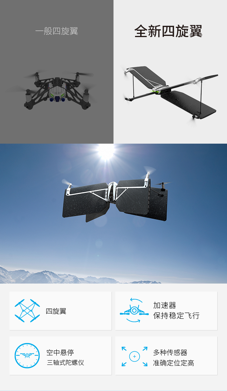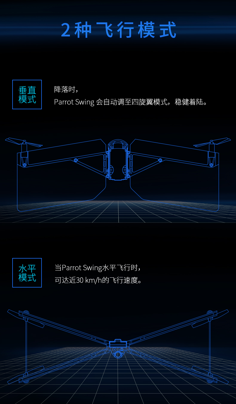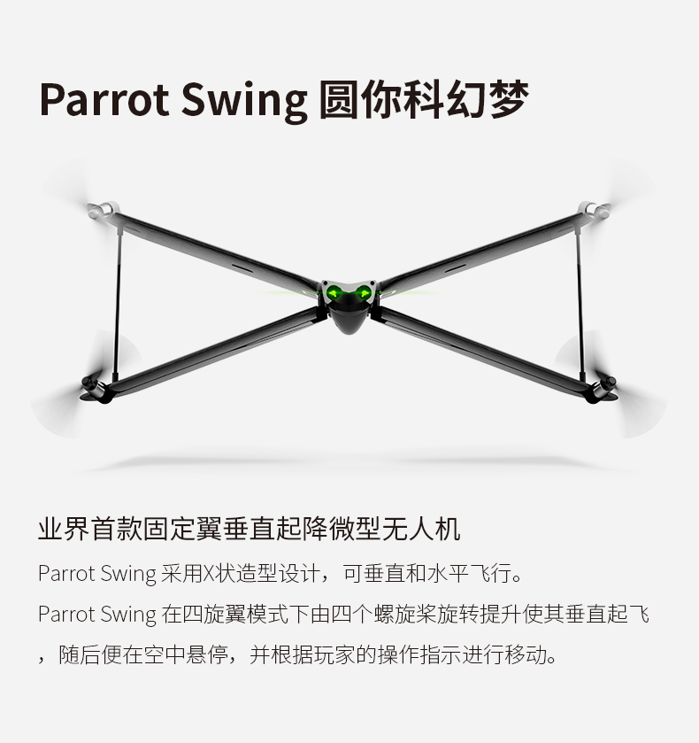 法国派诺特 Parrot Swing速影无人机 X翼遥控飞机玩具可手机遥控