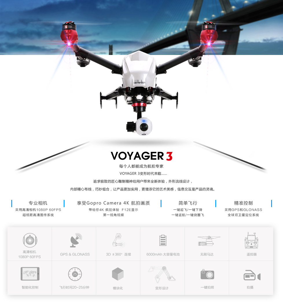 华科尔 Voyager 3 航拍版.带地面站 自备GOPRO相机
