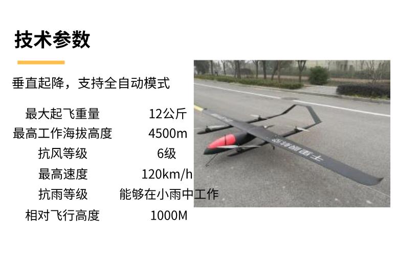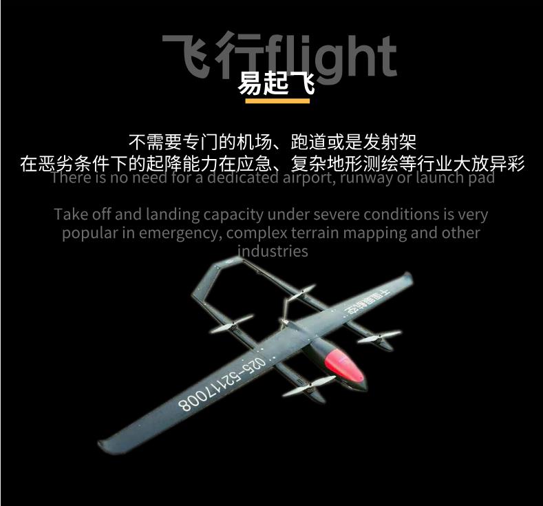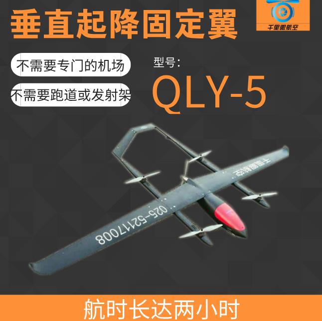 我公司自主研发的QLY-5型垂直起降固定翼无人机,具有垂直起降的能力,它的出现打破了传统固定翼的局限。