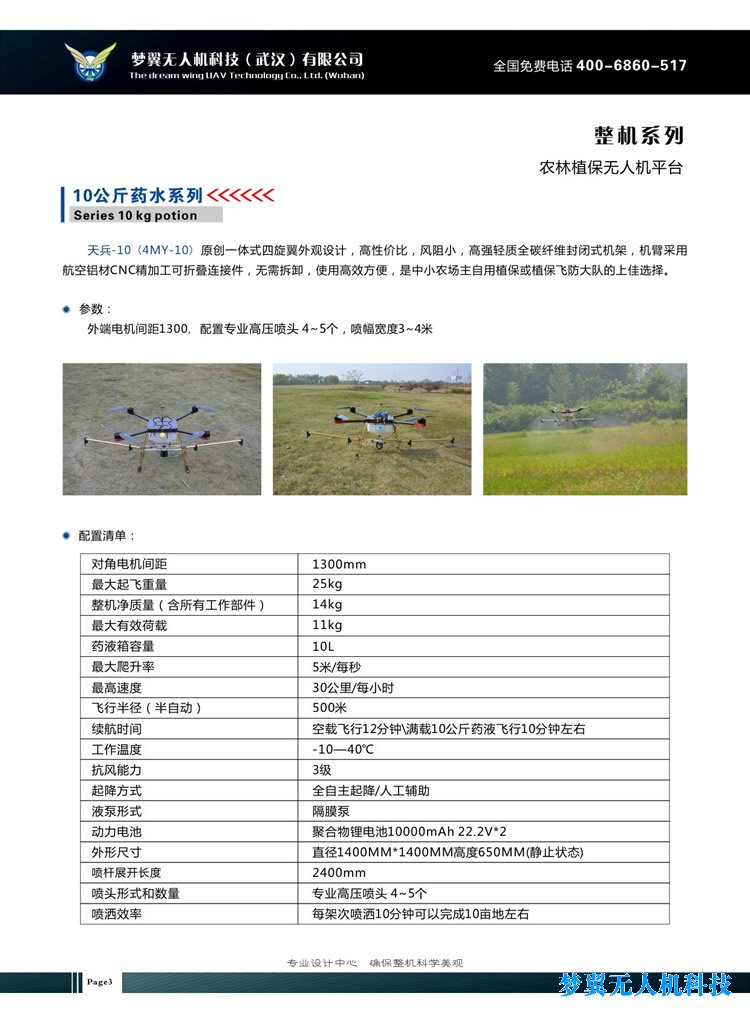 梦翼农用无人机天兵4my-10 大4轴10公斤