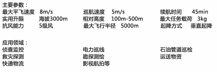 本系统利用六旋翼飞行器平台,装备高精度的GPS定位及飞控系统,可搭载光电成像、测温仪、激光测量仪、探照灯、扩音器、夜视仪等任务设备完成指定任务。系统具有多种任务规划模式和飞行控制模式,在执行任务时能够进行预先任务规划和实时任务规划,能够遥控和自主飞行。系统具有良好的可操作性、可靠性和可维修性。