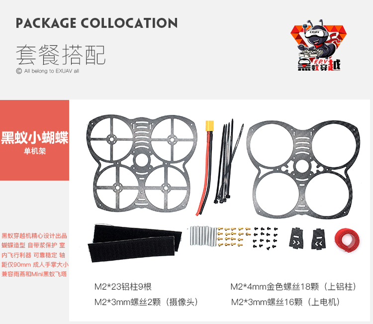 黑蚁小蝴蝶穿越机 到手飞套机 室内穿越机 带桨保护 90mm轴距机架