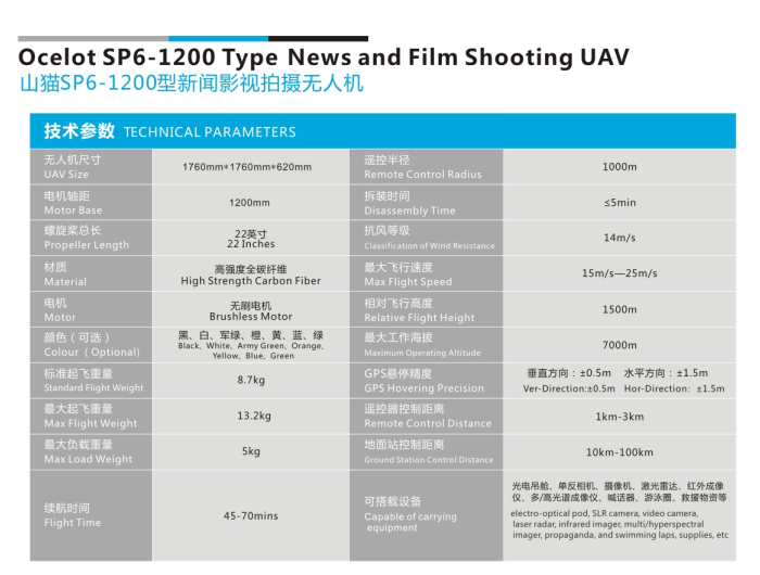 星空创新 山猫SP6-1200型新闻影视拍摄无人机