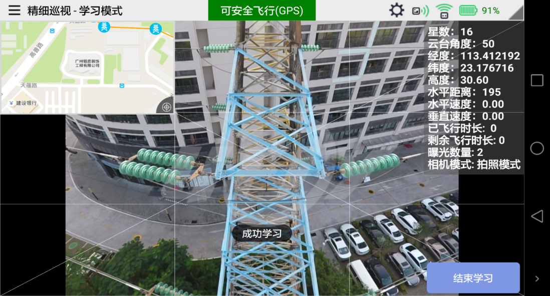无人机智能操作系统是基于大疆SDK开发的、针对电力巡航作业特点深度定制的无人机操作系统。系统涵盖了电网的精细化巡检和通道巡检,通过无人机的智能控制,能够清楚、准确发现电网周围环境和本地的潜在危险和缺陷。 杆塔精细化巡检模块上的学习模式可以按照不同塔型记录和存储无人机的飞行轨迹和拍摄位置。所记录的飞行信息将作为下次飞行依据在自动化巡检模式中使用,实现无人机的自动精细化巡检,降低对巡视人员的无人机操控素质的要求,大大降低了巡视成本,提升了杆塔巡检的效率,保证了电网巡视作业的安全。