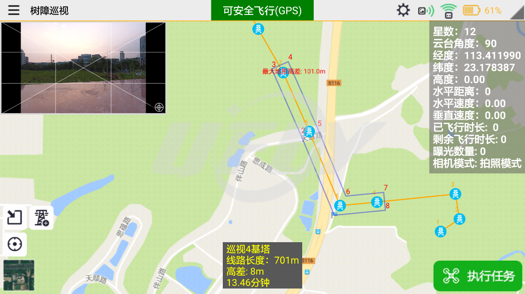 Ugrid无人机智能操作系统是基于大疆SDK针对电力巡航作业特点深度定制的无人机操作系统,使电网巡视作业安全可靠。该系统能全自动完成输变配线路的精细化巡视(配合RTK使用)、通道巡视、灾情评估、资产全景等外业数据采集工作。