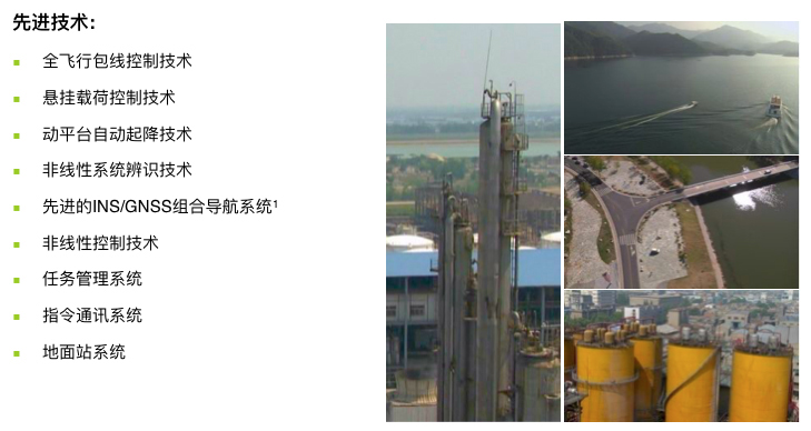 该系统由INS/GNSS组合导航系统、飞行控制系统、任务管理系统、指令通讯系统与地面站系统(视配置而定)等组成。系统符合工业标准,有极高的稳定性与可靠性(软件与硬件),能够在恶劣环境中使用,如山区、海上、城市环境等。可用于常规布局直升机、非常规布局垂直起降飞行器、变载荷任务(如投放任务、牵引任务)等。