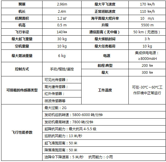 8)GPS导航控制精度(偏航距):±3m;高度控制精度:±3m;