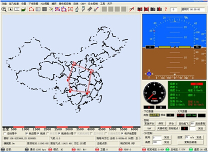 2)双向无线数据通信,方便实现与地面控制站的数据通讯;实时显示飞行器姿态、坐标、高度、速度、航向、航迹等,并能随时更改当前航线和飞机的设置参数,发送任务设备工作指令;