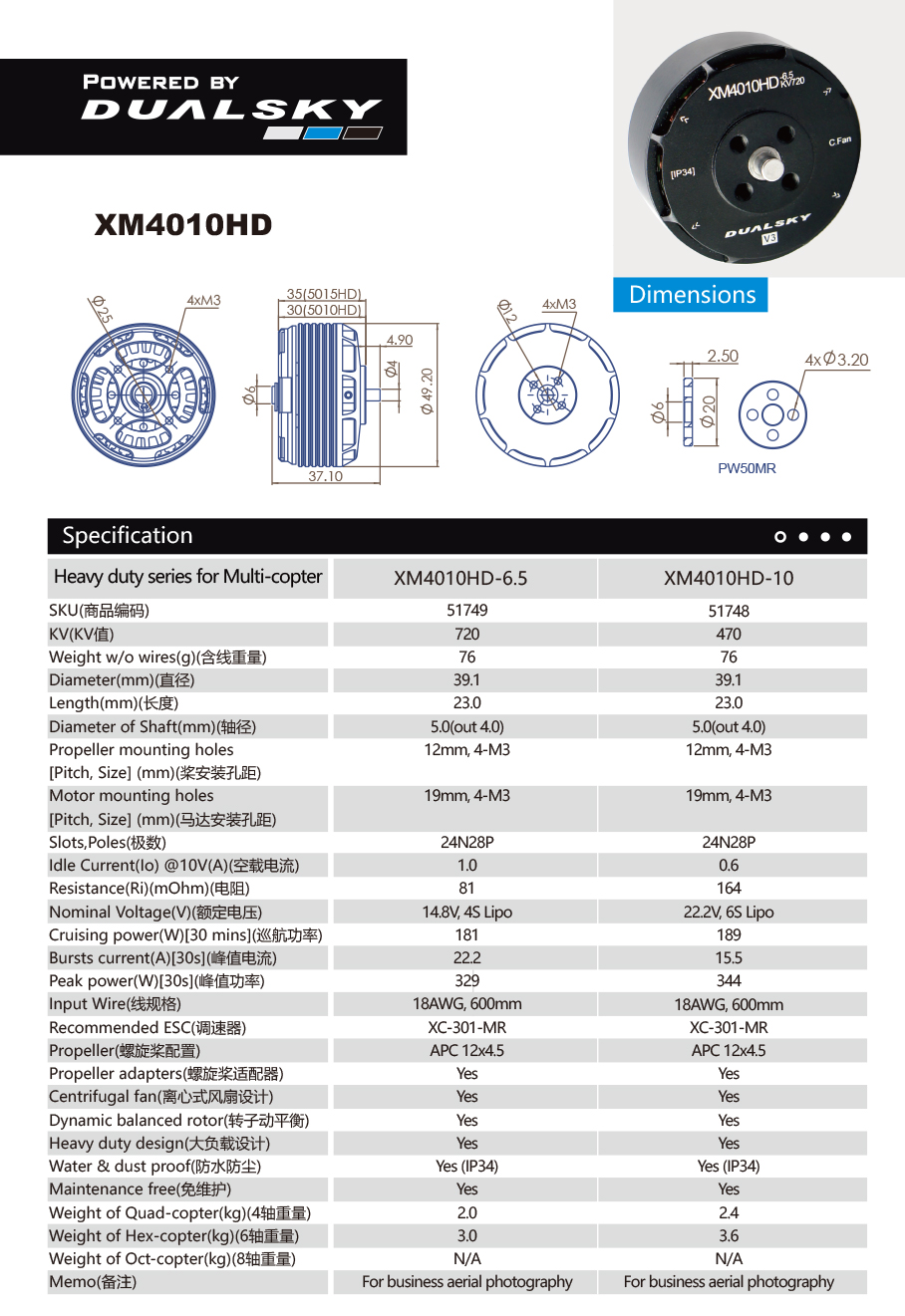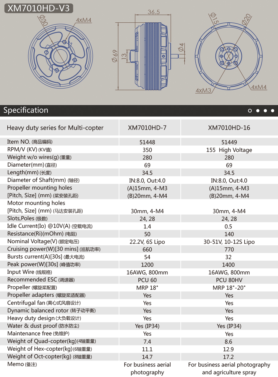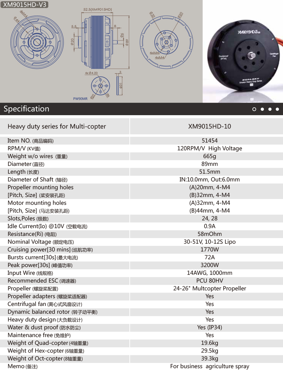 双天模型 第三代Heavy Duty 盘式无刷电机 高压版