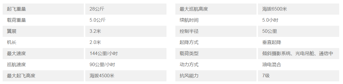 瞄准中远距离、 大型载 荷成像巡查(搭载可见 光相机、 红外相机、 多 光谱相机等载荷) 需求 的行业用户