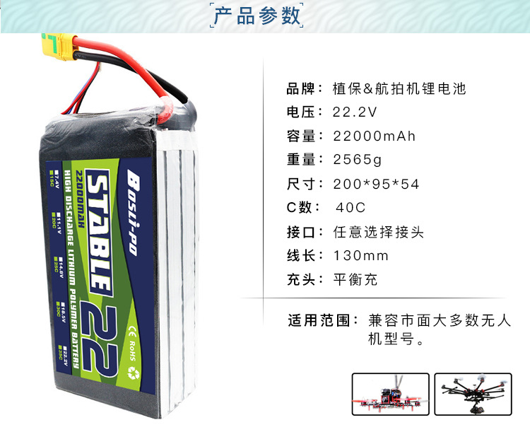植保无人机测绘电力巡线无人机电池22000mAh 6S