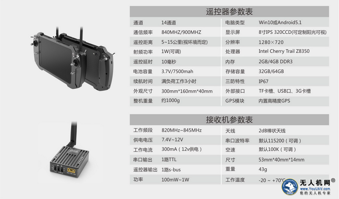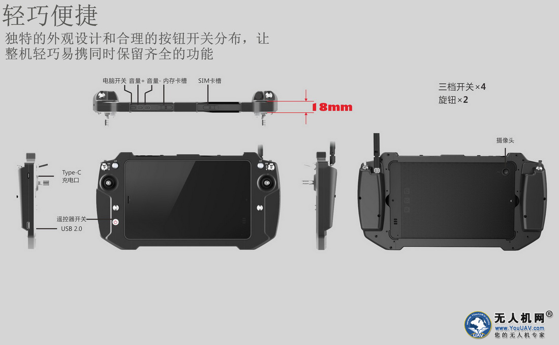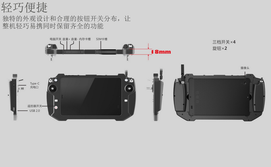 T20 遥控器是一款集成化遥控器,能够实现超视距控制飞机、控制云台、实时状态飞行反馈、规划航线等。遥控器支持Win10和Android双系统,兼容市面大部分地面站。