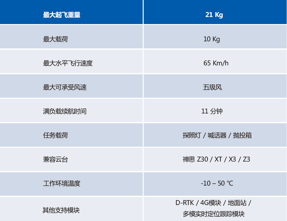 2、具有最高三防标准的专业定制无人机,负载重达10公斤,可额外配电池增加续航时间,双电池最高续航时间39.5分钟。