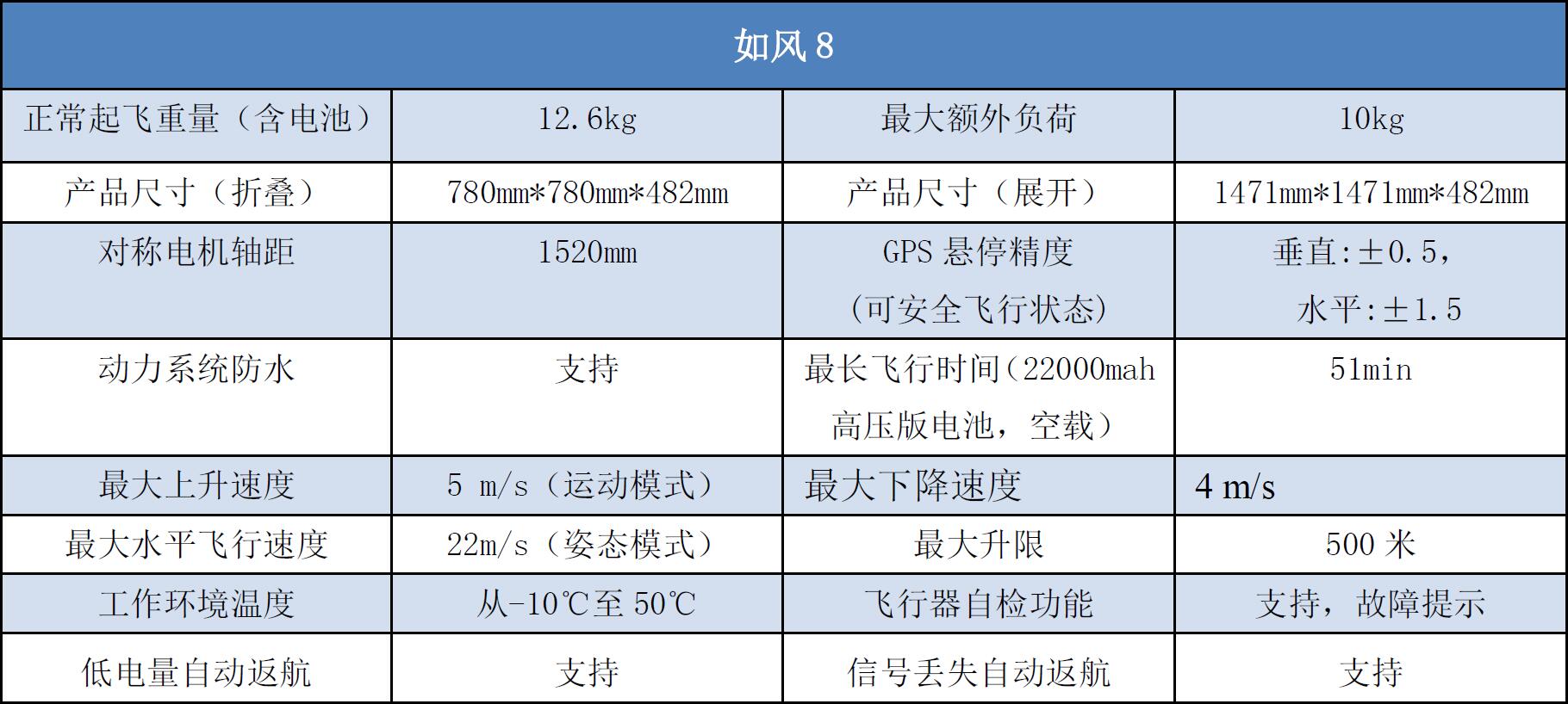 八旋翼定制飞行平台,采用Y型8旋翼设计,满足10KG的超大载重,在提供充足动力的同时,也做到了动力冗余,荷载充足,安全稳定。定制化飞行平台可全面开放SDK接口接受开发及定制,独特的平台化设计,轻松实现软硬件的集成。独特的防水防尘设计,有效的古迹水雾、尘土和大颗粒物质,满足特殊环境中的作业需求。内循环冷却系统,保障长时间稳定工作。折叠的机臂设计,伸缩的脚架,专业便捷。