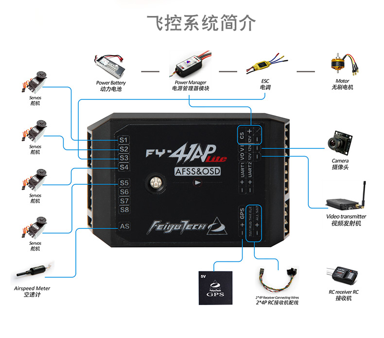 飞宇科技 41AP Lite 入门级固定翼飞机飞控 简易安装 集成了OSD