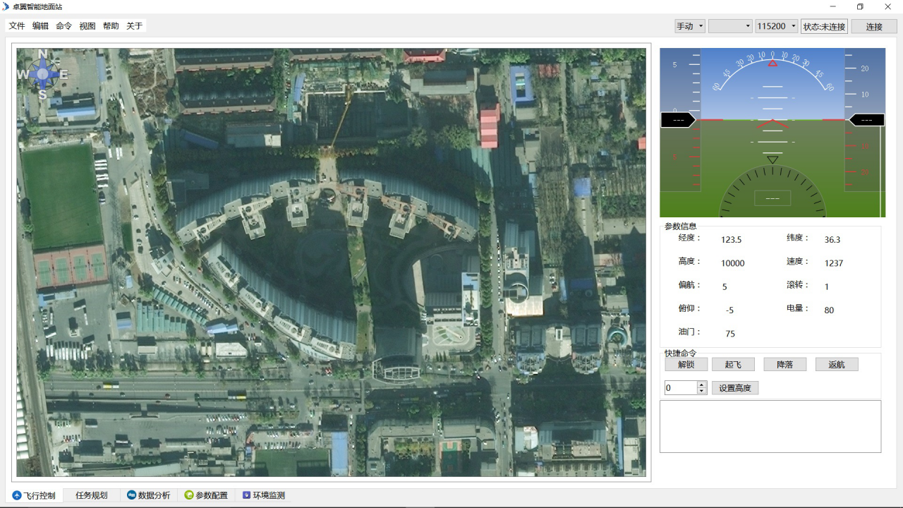 地面站选用卓翼智能公司自主研发的ZY-GCS-S便携式地面站。ZY-GCS-S便携式地面站集飞行控制及任务管理软件于一体,采用了模块化的软件结构和开放式的软件接口设计,可以方便地进行二次开发和行业应用设计。