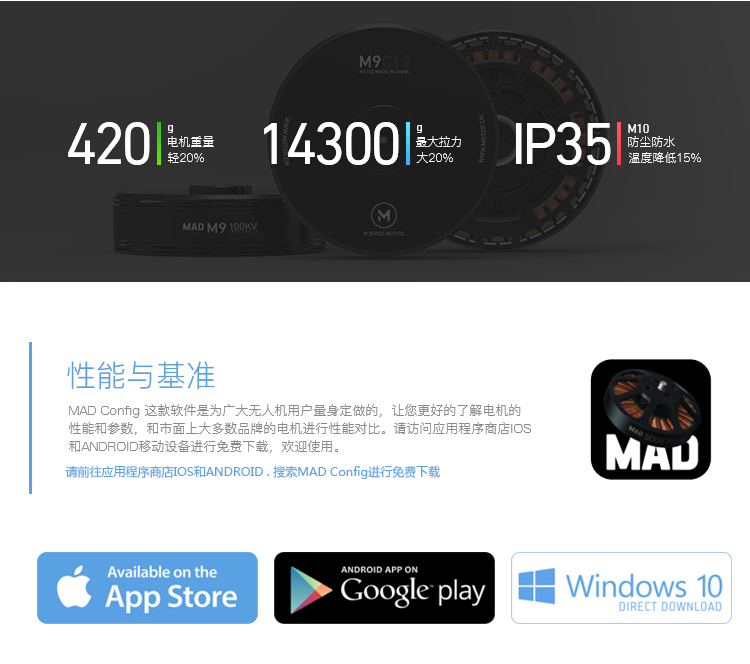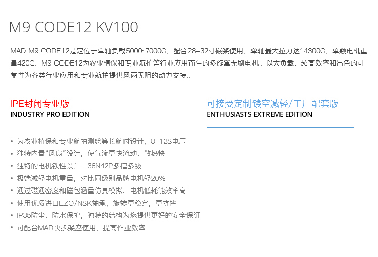 MAD多轴/旋翼盘式无刷电机 工业植保 防水防尘 U10 II MAD M9 C12