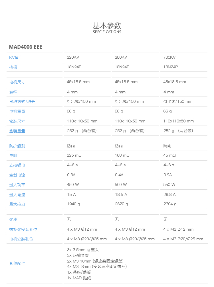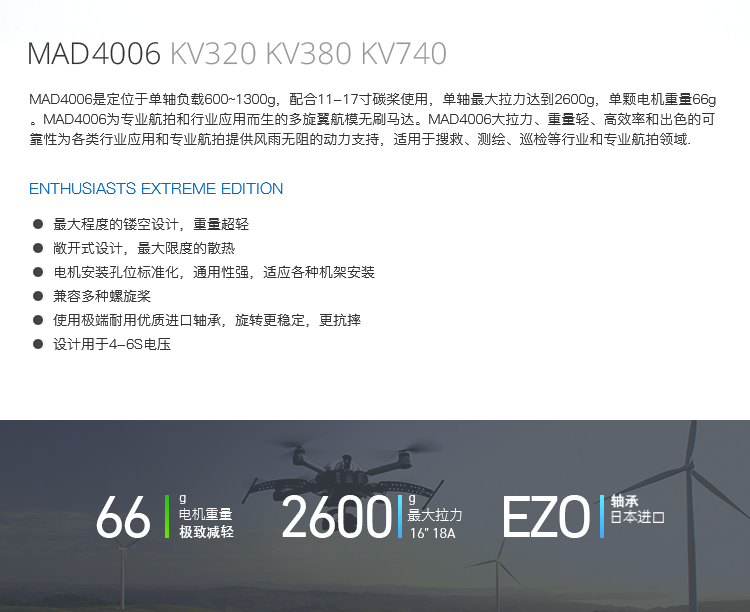 MAD 轻量化多轴/旋翼盘式无刷电机 EEE爱好者级别 40系列 4006