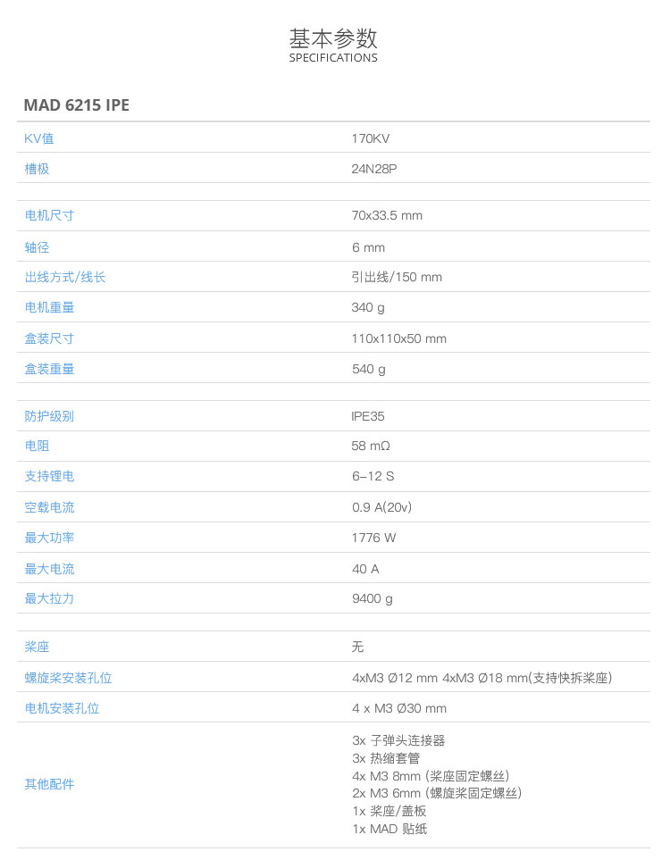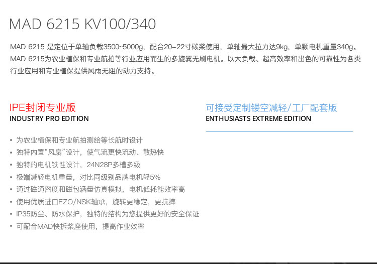 MAD 多旋翼无刷电机 6215无刷电机 无人机电机 农业植保专用马达