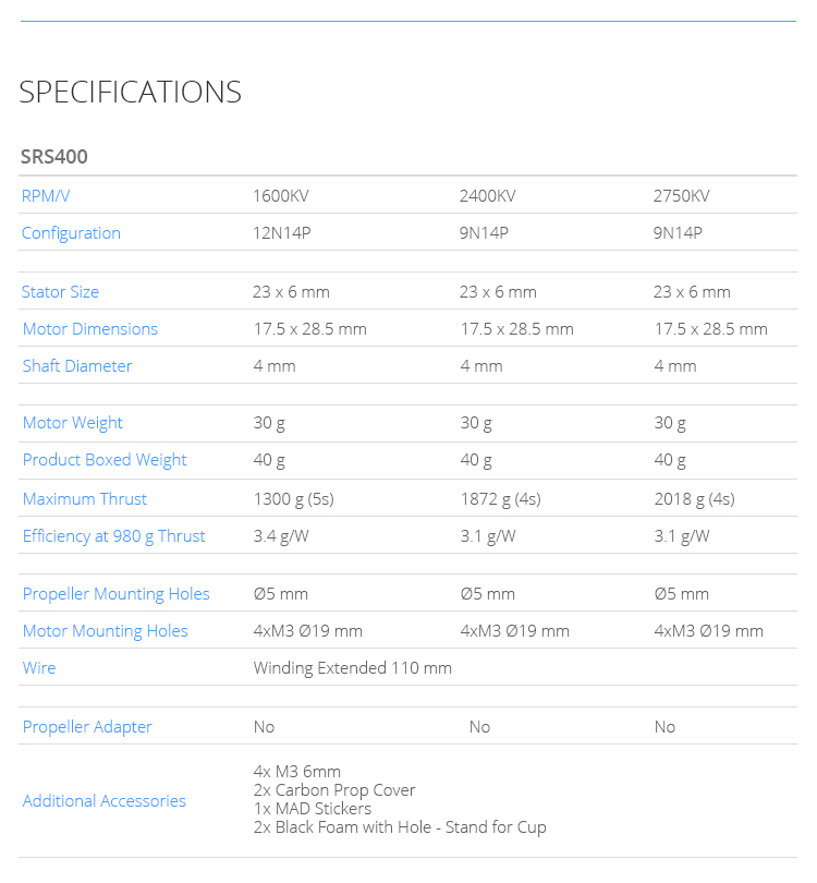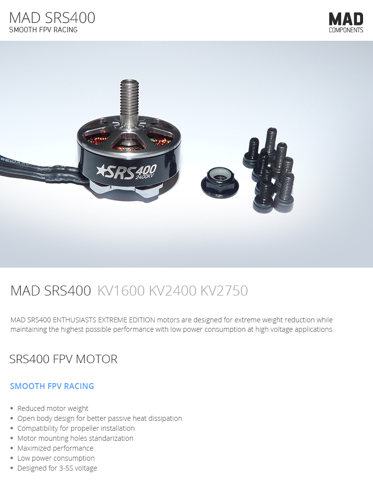 MAD FPV 竞速穿越机无刷电机 SRS400 FPV电机 磁力创新无刷电机
