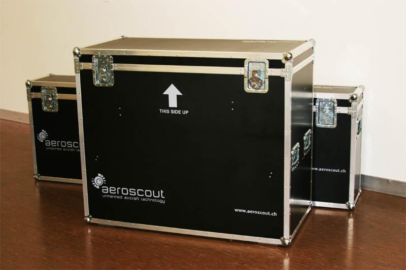 特征Aeroscout无人机运输单元可以轻松运输Scout B1-100 UAV直升机系统,并配备所有必需的无人机现场设备。运输单元由一个单元组成,其中一个单元具有用于直升机主体的易于拆卸的轮子,另一个单元用于直升机尾梁。内部固定装置在航空运输期间以及在实验室或货车运输期间提供整个无人机系统的安全运输。诸如燃料罐,工具,电池充电器等的其他无人机设备可以容易地放置在运输单元内。两个单元均提供多个可伸缩手柄,以简化紧固。此外,两个单元都可以用钥匙锁定。