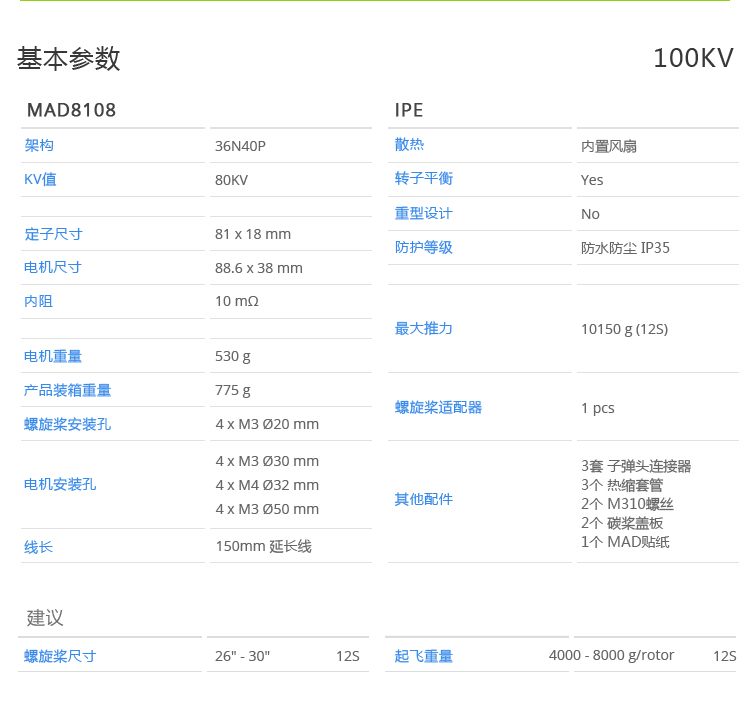 MAD 高效多轴/多旋翼无刷电机 植保电机 8118 U10 Plus