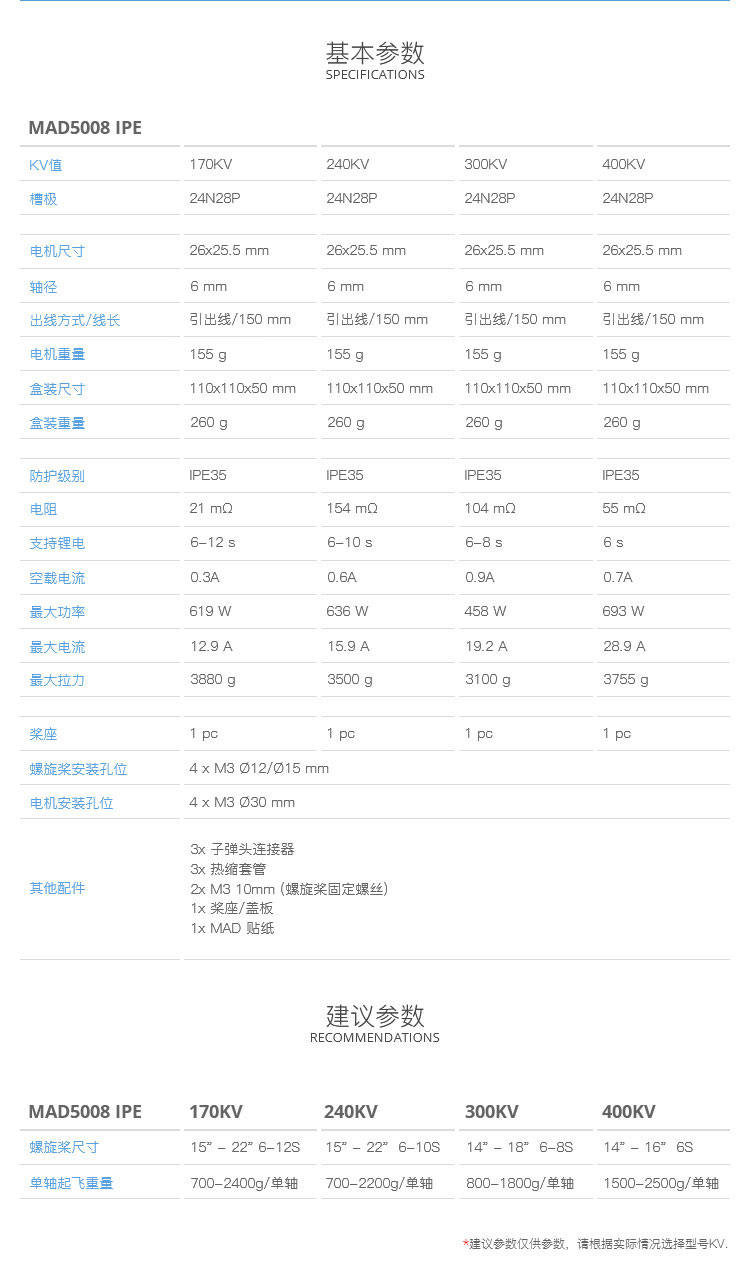 MAD 轻量化多轴/旋翼盘式无刷电机 IPE专业防水防尘 50系列 5008