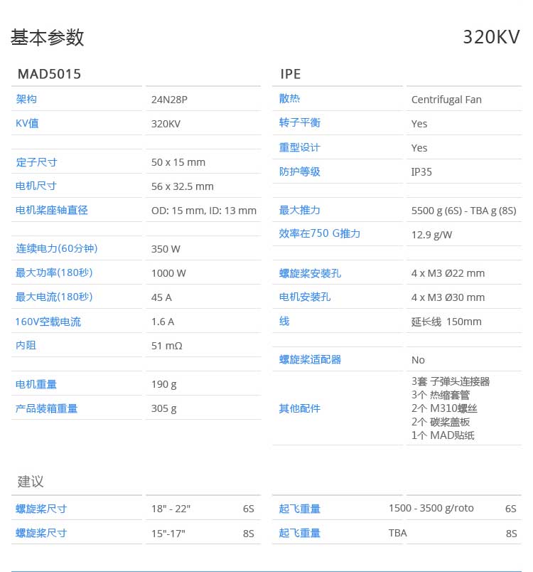 MAD 高品质多轴/旋翼盘式无刷电机 IPE 专业级别 防水防尘 5015