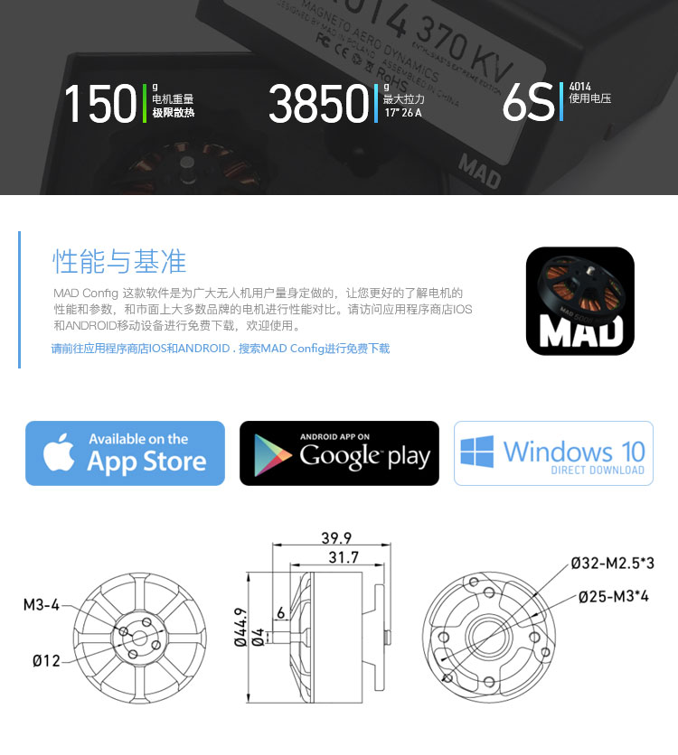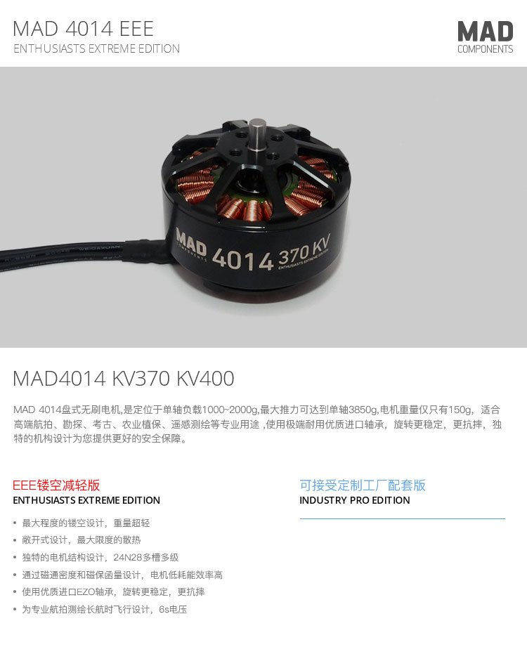 MAD高品质多轴/旋翼盘式无刷电机 4014 高效率无刷电机