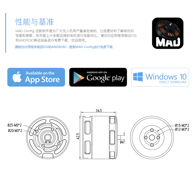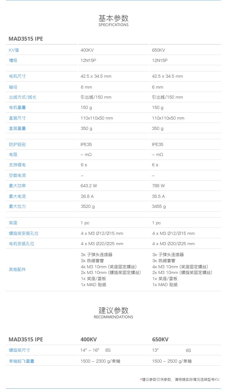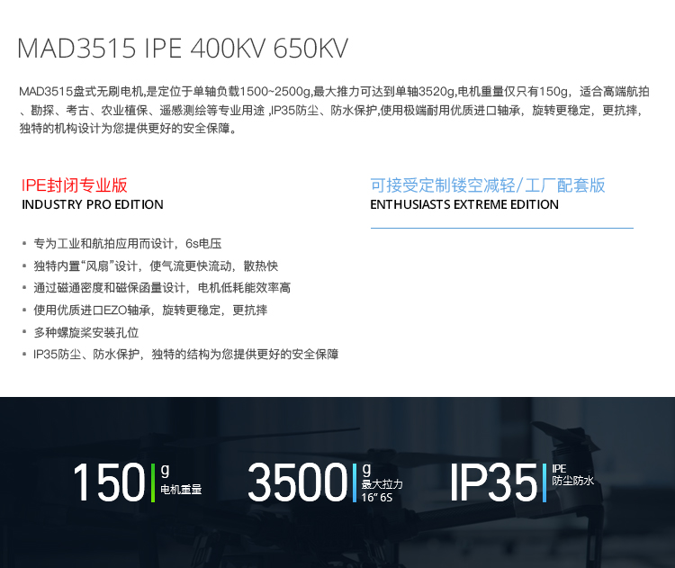 MAD 轻量化多轴/旋翼盘式无刷电机 3515 IPE TM U5 V2.0 专业级别