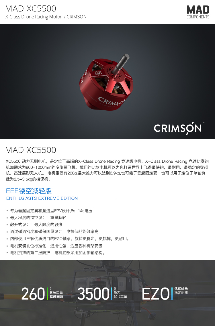 MAD多轴/旋翼无刷电机高速FPV CRIMSON XC5500固定翼垂起无刷电机