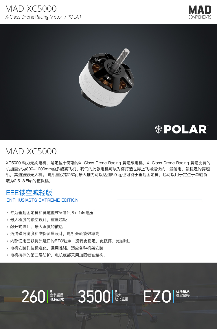 MAD多轴/旋翼无刷电机 高速FPV POLAR XC5000 固定翼垂起无刷电机
