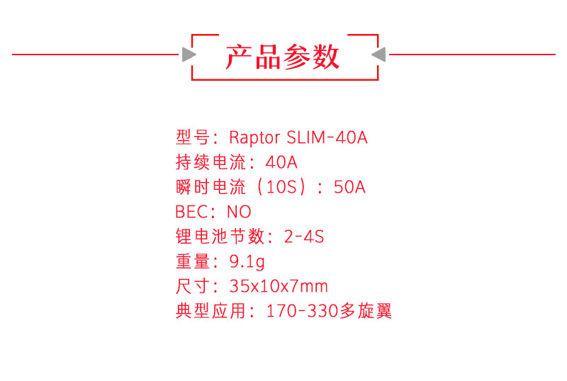 飞盈佳乐猛禽Raptor SLIM 40A穿越机专用 窄版电调2-4S 支持Dshot