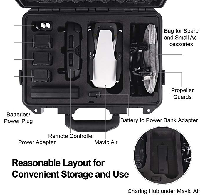 合 MAVIC AIR 可高达5电池遥控器充电器充电 HUB 螺旋桨的和其他配饰飞行更加组合功能。 一个存储袋非常方便地提供备用螺旋桨、线缆和小零件