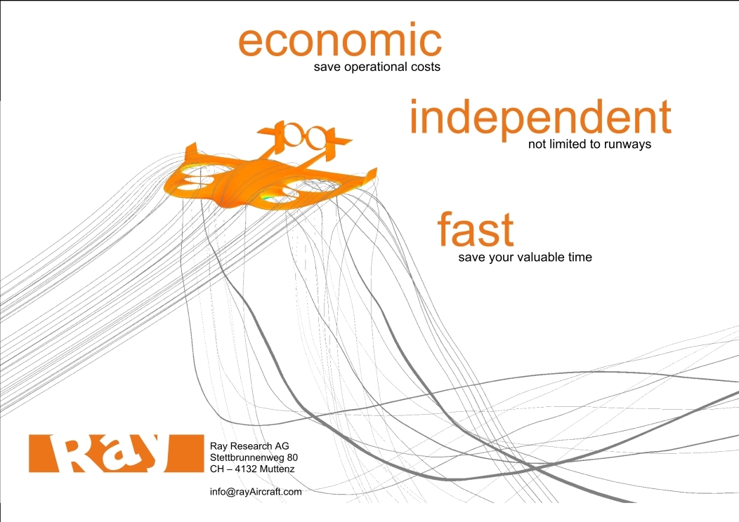 垂直起降的升力由四个翼扇产生。对于巡航飞行,机翼将关闭。雷飞机与直升机一样独立(=不需要跑道),几乎与传统飞机一样经济。