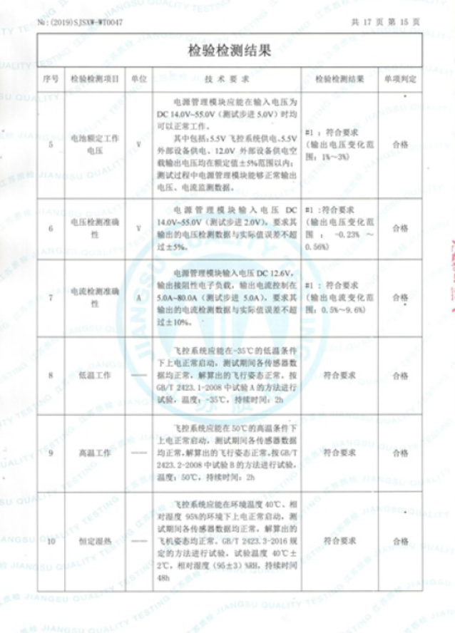 其他特性:飞行数据以及作业输出数据存储于飞控内部TF卡,可在飞行结束后提取至计算机上查看;高度开放且可定制的API接口 飞行控制器-多旋翼模式所支持飞行参数 最大上升速度:1.0-8.0m/s 最大下降速度:1.0-4.0m/s 最大飞行速度:2.0-20m/s 最大航向旋转速度:15-180°/s 摇杆控制最大倾角:20-40° 最大飞行高度(对地):5-2000m 飞行控制器-固定翼模式所支持飞行参数 最大上升速度:3-15m/s 最大下降速度:2-20m/s 最小飞行速度/失速速度:8-130m/s 最大飞行速度:15-150m/s 飞行速度变化率:2-20m/s² 滞留点半径:40-500m 最大飞行高度(对地):5-2000m 备注:1,以上参数仅为理论值,实际根据飞机硬件配置不同,您需要调整相关参数的数值 2,最大飞行高度限制可向我公司客服申请授权码解除部分限制。 对于有航空管制的区域,您需要提供飞行控制器序列号,有关部门的批复文件扫描件,其中应标有许可的最大飞行高度、飞行区域、空域使用时间。 对于无航空管制的区域,您需要提供飞行控制器序列号,您申请解除限制的区域中心的WGS-84坐标以及半径,空域使用时间。 电源管理模块-产品参数 详情点击该按钮 数据接口:CAN总线 同时最大支持接入数量:2个 电源输入:低压版3-8S 14.0-35.0V;高压版3-12S 14.0-55.0V(电压大于10S必须使用防打火插头) 电源输出:DC 5.5V 3A飞控系统供电 DC 5.5V 3A 舵机等其他设备供电 DC 12.0V 3A 舵机等其他设备供电 长时间允许电流:≤80.0A 瞬时允许电流(<5s):100.0A 检测电流范围:±126.0A GPS&磁罗盘模块-产品参数 详情点击该按钮 数据接口:CAN总线 同时最大支持接入数量:2个 电源输入:DC 5.5-7.0V 50mA (宽电压版本:2.0-17.0V) GPS芯片:Ublox-M8N 备注:GPS模块有发光版本,可当飞控系统状态指示灯使用 全双工数传-产品参数 详情点击该按钮 工作频段:433MHz+915MHz 射频功率:100mW / 1000mW 标称通信距离(空旷场地,无电磁干扰):>5Km / 10Km 实测通信距离(飞行条件见详细介绍页面):>12Km / 30Km 串口波特率:固定57600bps 空中速率:飞机->地面16Kbytes/s 地面->飞机4Kbytes/s 内部数据缓冲区大小:8Kbytes x2 数据接口(天空端):USART x1,PWM输入捕获x6,S-BUS/D-BUS信号输入端口,PPM/发动机转速脉冲信号输入端口 x1 数据接口(地面端):USB2.0(USBType-C) 警告!1000mW射频功率版本可能对人体健康有害! 空速计模块-产品参数 数据接口:CAN总线 同时最大支持接入数量:1个 电源输入:DC 5.5-7.0V 测量范围:±150m/s 配套地面站软件(KPUAV Ground Station) 详情点击该按钮 地面站软件所需最低系统配置: CPU:主频/睿频≥2.0GHz 线程数≥2线程 内存:2GB 硬盘:4GB剩余空间(必须为固态硬盘) 显卡:显存≥512MB,显卡核心性能水平达到如下显卡芯片天梯图1X性能倍率以上 https://www.xiazaiba.com/uploads/editor/2018/0925/water_2018092518344874524.jpg 地面站软件推荐系统配置: CPU:Intel酷睿架构/AMD Zen架构 单核主频/睿频≥3.0GHz 线程数≥4线程(影响航点生成/修改计算速度,最多使用6线程) 内存:8GB 硬盘:20GB剩余空间(必须为固态硬盘) 显卡:显存≥1GB,显卡核心性能水平达到如下显卡芯片天梯图10X性能倍率以上的显卡均可(影响水平移动地图时的流畅度) https://www.xiazaiba.com/uploads/editor/2018/0925/water_2018092518344874524.jpg 产品功能检验报告(如有投保或招投标需要我公司可提供该文件扫描件)