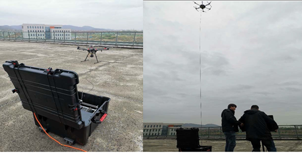 系留无人机将无人机和综合缆绳结合起来,通过光电综合缆绳传输电能,使无人机不受电能限制而长时间停留在空中。亦可以有效解决飞丢、炸机等安全问题。