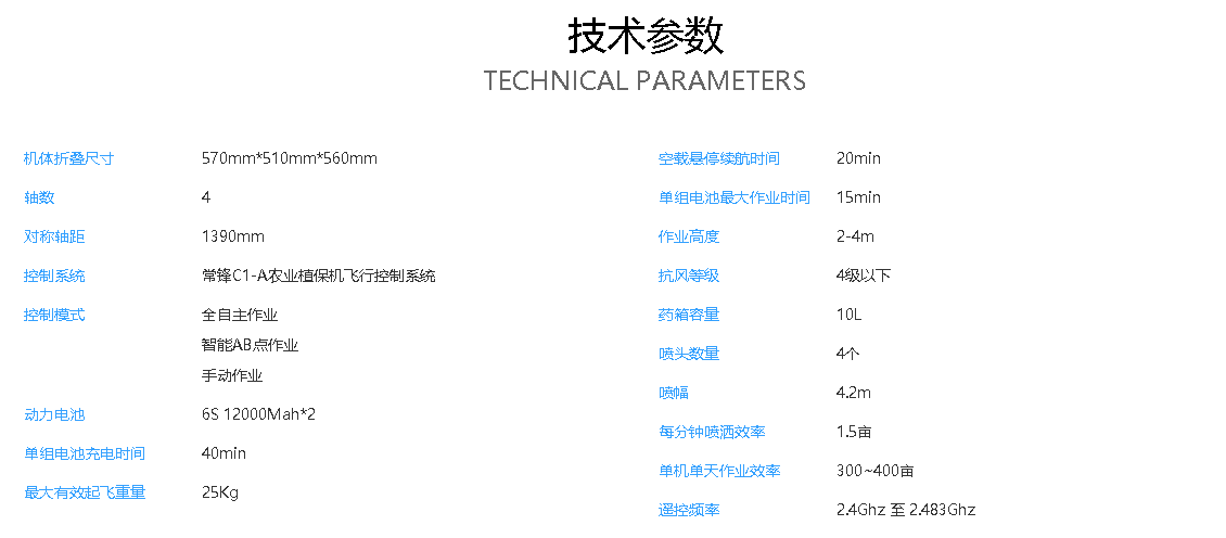 常锋D410采用的常锋C1-A是一款为植保无人机“量身智造”的成熟飞行控制系统,具有高效、智能、精准、稳定等特点,采用工业级硬件以及先进的导航、控制、在线诊断算法,具有超强的飞行可靠性和稳定性。配备了功能齐全的软件系统及大数据云端,历经数百万亩农田喷洒,对操作方式及作业方式做了深度优化,可适应多种机型、多种地形。可选配数据管理单元(DMU),将飞行、作业、设备健康状态、飞行员等信息记录本地并上传至云端,可实现数据存储、作业调度、团队管理、设备管理、飞行监管等各项需求。