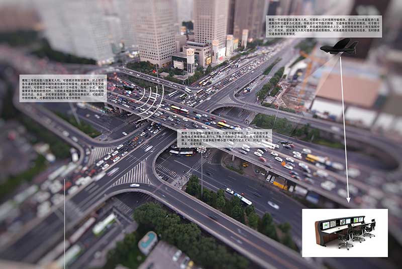 鹰眼警用无人机系统可替代路面警力,从空中实时监控路面交通情况,通过航线设定、自主飞行,将沿线的交通路况实时传输到交通管理指挥中心,并可紧急应对交通事故、节假日拥堵等交通异常情况,大大提升交通管理的效率和效果。