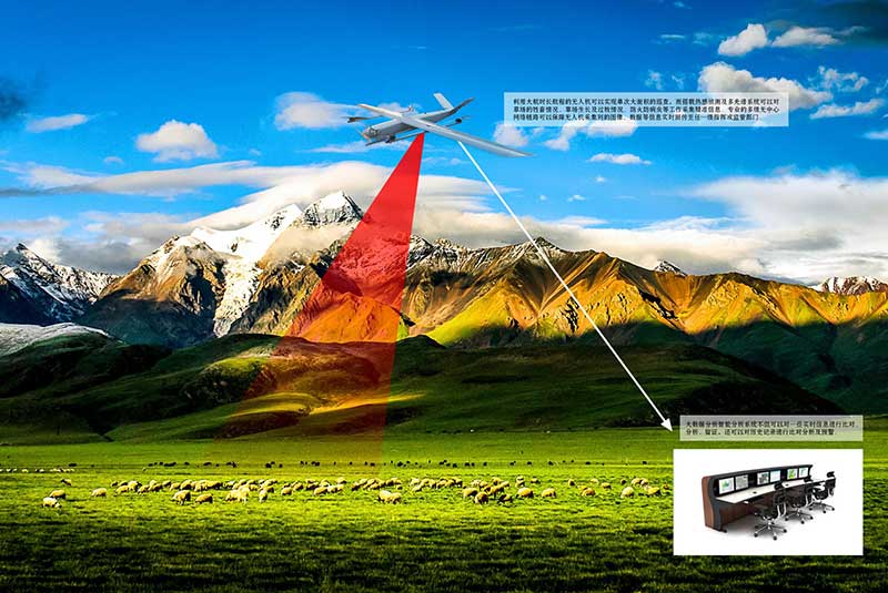 利用大航时长航程的无人机可以实现单次大面积的巡查,而搭载热感侦测及多光谱系统可以对草场的牲畜情况、草场生长及过牧情况、防火防病虫等工作采集精准信息。专业的多级无中心网络链路可以保障无人机采集到的图像、数据等信息实时回传至任一级指挥或监管部门。大数据分析智能分析系统不但可以对一些实时信息进行比对、分析、留证,还可以对历史记录进行比对分析及预警。