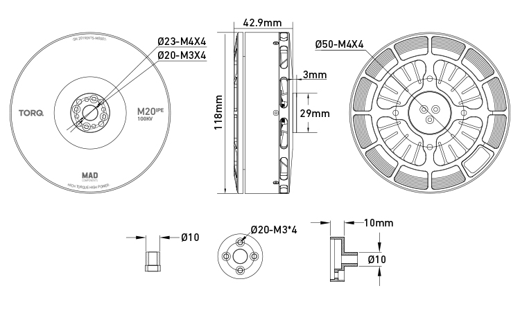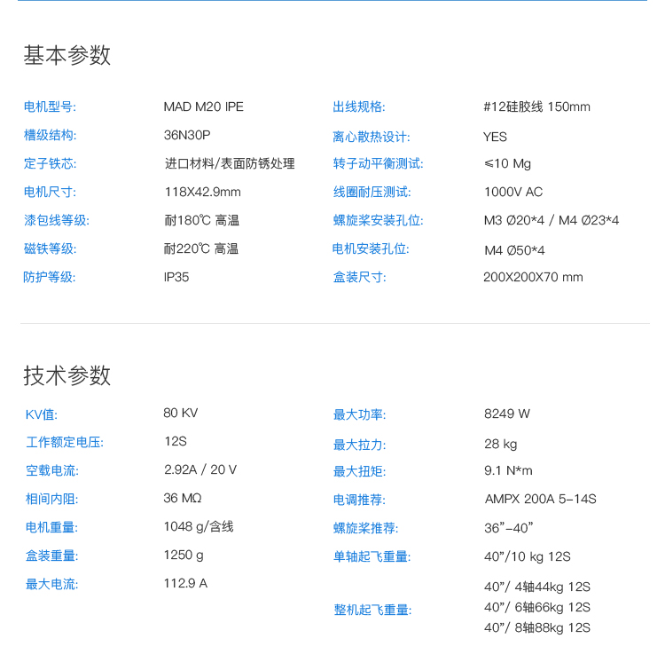 MAD多轴多旋翼动力电机外转三相盘式直流无刷马达植保系留垂起M20