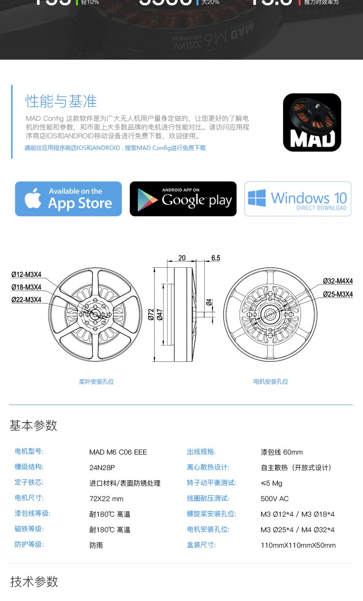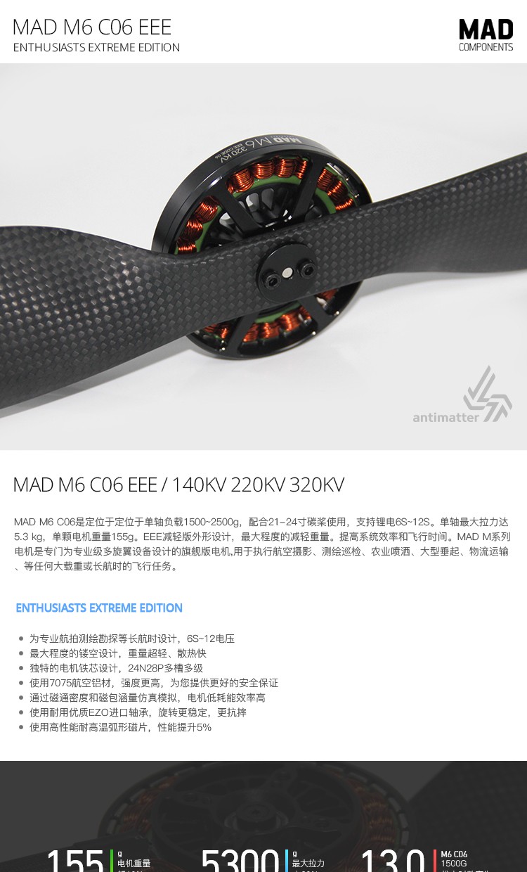 MAD多旋翼垂起固定翼长航时超轻无人机无刷电机航模悬浮马达M6C08