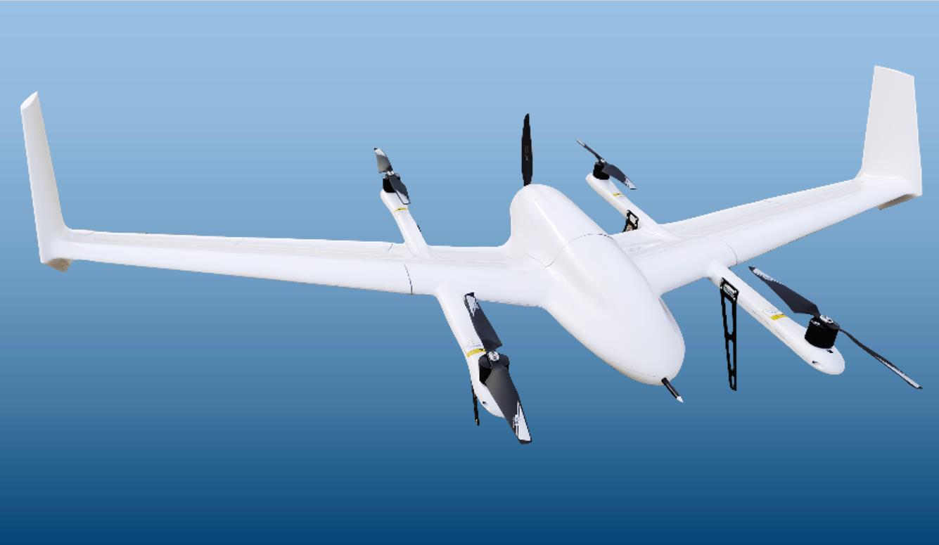 3、复合材料一体化机身,采用固定翼与四旋翼结合的复合机型设计;