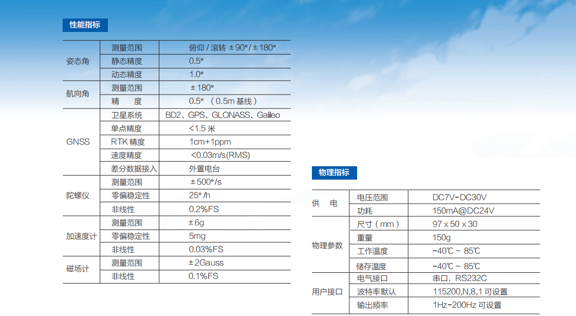 航向测量精度 0.5°(0.5m 基线)