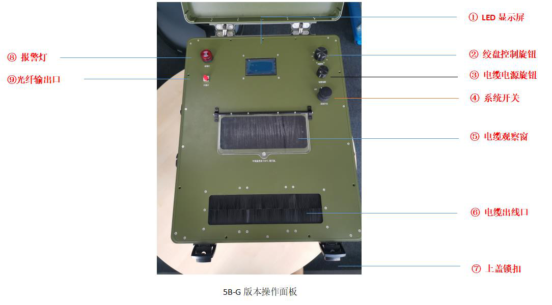 ①LED显示屏:主要显示公司信息、产品型号、电流、电压、功率、温度、绞盘拉力、出线长度及报警码等;