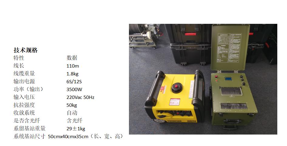 AirFly 100-5B-G单兵系留无人机供电基站主要与全球多种商业旋翼无人机及直升机组合成长航时飞行系统,飞行系统通过不同的挂载实现不同的应用场景,主要用于移动中继基站与高空长时间监控及应急照明。同时可以解决海事、消防、安防、电力、通讯及近空防卫等部门进行特种行业的应用需求的一个飞行器供电平台,具有完全独立自主生产权的创新产品。