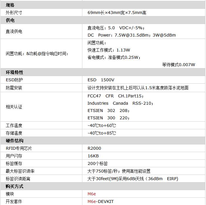 M6e模块按照RFID读写器的性能标准设计,因此硬件尺寸更加小巧,同时可以在移动RFID设备中使用。