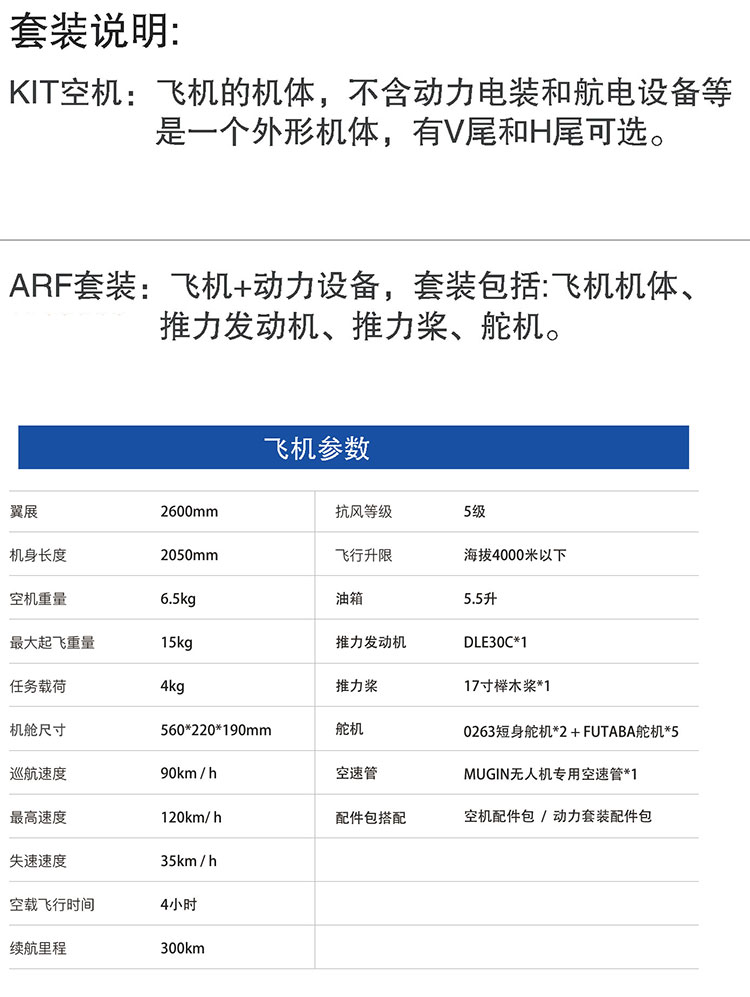MUGIN 2600MM油动固定翼滑行机玻璃钢+轻木