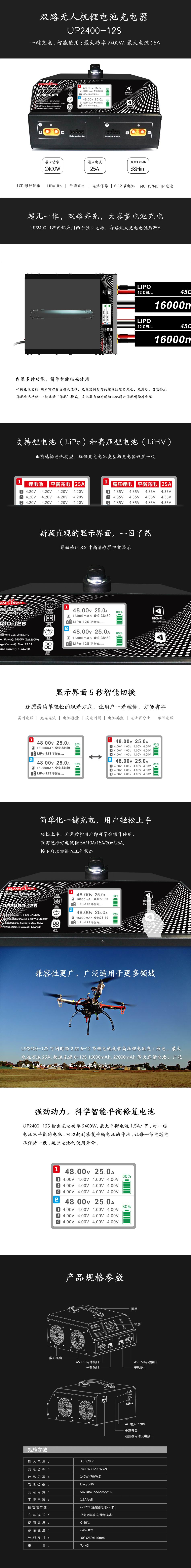 UP2400-12S (中文版)四通道无人机锂电池充电器 (6-12S)