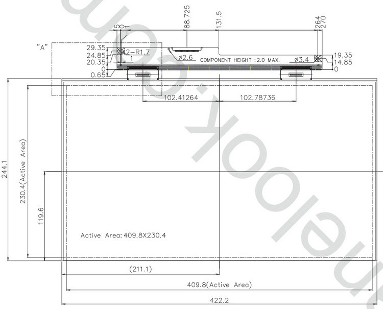 | 驱屏电压 | 5.0V | 显示区域 | 409.8(H)×230.4(V) mm |